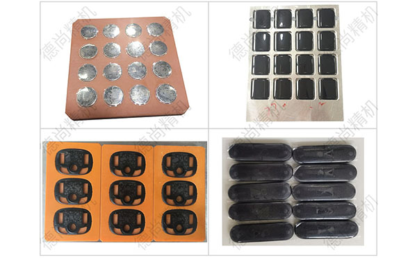 但是如果使用半自動貼膜機,可以用治具一次性一排放4個(根據產品尺寸大小),產品小的我們可以一次放4排,也就是一個治具上擺上16個紐扣,如果一個人專門負責不停的擺盤,而另一個人專門貼,然后放料倒出去,拿/貼/放這一組16個的時間是也是6秒!